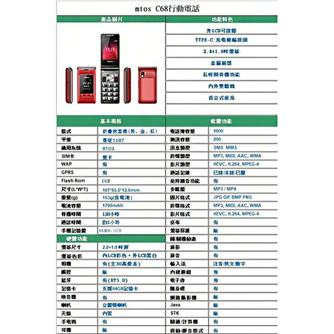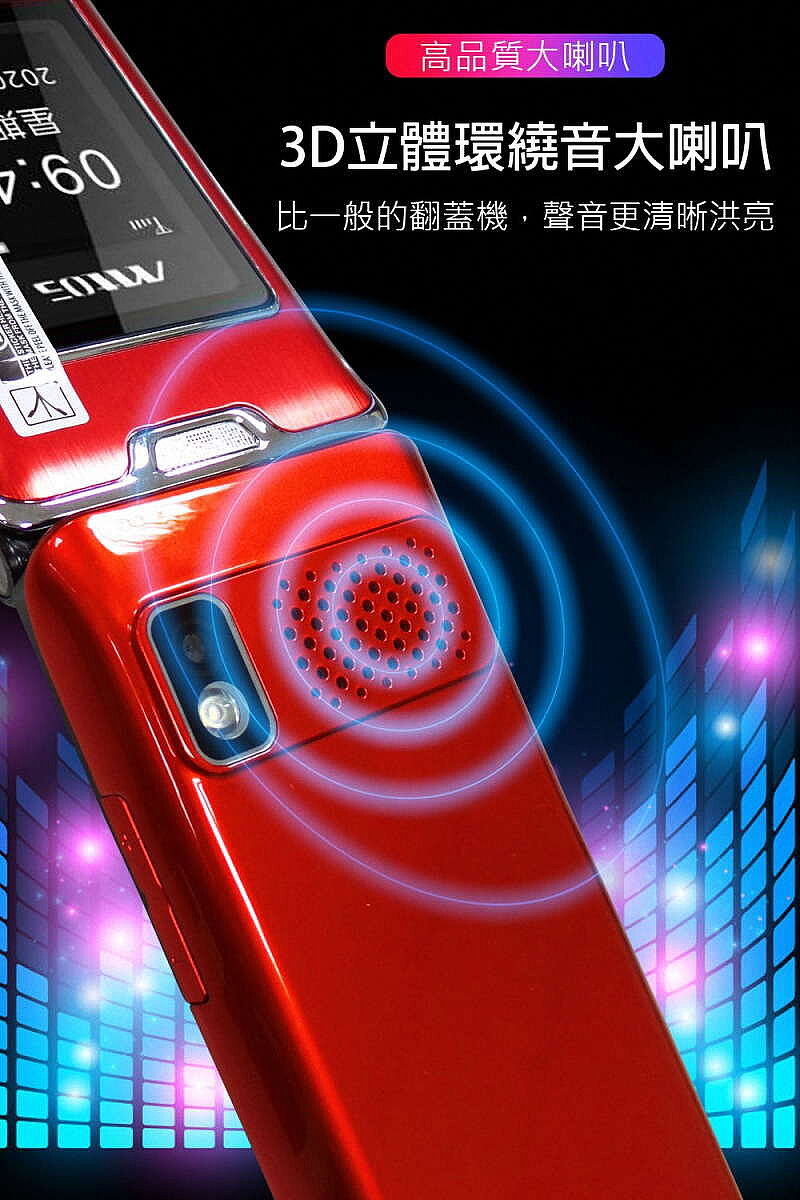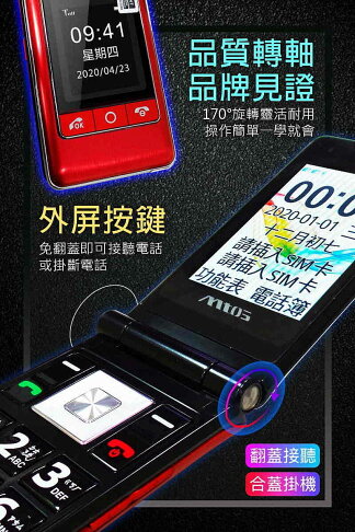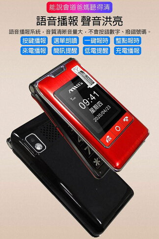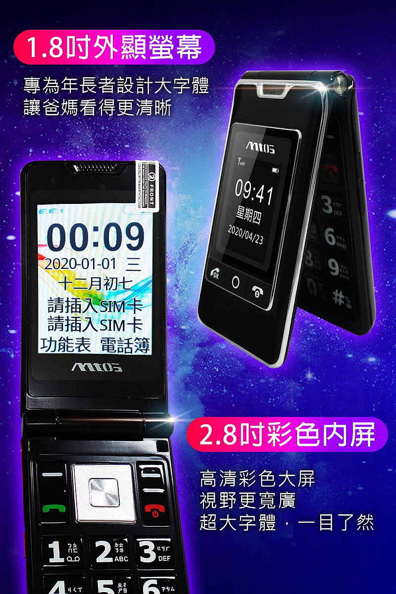 ◎實體大字體+大按鍵+大鈴聲、具備來電報號◎螢幕:主螢幕(不支援觸控)2.8吋、240 * 320 pixels、LCD螢幕;副螢幕1.8吋(主螢幕彩色、副螢幕黑白)