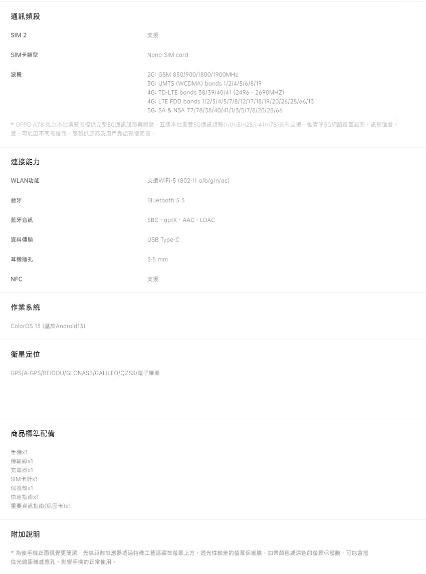商品詳細介紹型號: OPPO A78