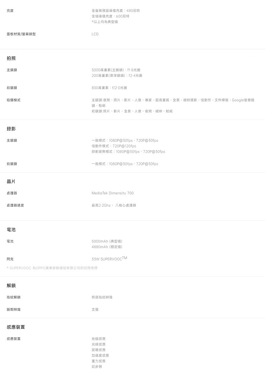 O處理器型號 Dimensity 700